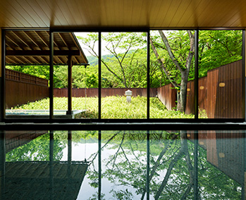 都内から電車・車で約2時間。鬼怒川渓流沿いの森の中に佇む木漏れ日の湯宿。施設の中央には中庭が広がり、新緑から紅葉、雪景色まで、四季折々の風景をご覧いただけます。お部屋は全室がご当地部屋「とちぎ民藝の間」。益子焼や黒羽藍染など、とちぎの民藝をモダンに設えました。
