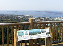 標高212.8m。壱岐島で一番高い山。展望台からは壱岐全島と眼下に郷ノ浦の町並み、その背後に原島、長島、大島の渡良三島を望むことができる。山頂には1889(明治2)年5月に海軍水路部によって設置された「緯度測定標」があり、石標に刻まれた設置年の銘から岳ノ辻の石標が国内で最も古い事例であることがわかる。