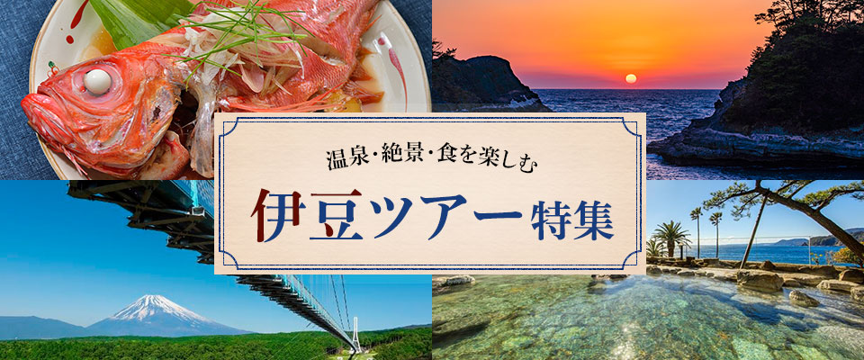 伊豆旅行・ツアーに行くならクラブツーリズムにおまかせ!添乗員付きのツアーなら安心で快適です。河津桜・浄蓮の滝・修善寺といったエリアごとの観光情報や、新鮮な海産物などの美食情報、伊豆の名物・温泉情報などをご紹介。ツアーの検索・お申し込みも簡単。