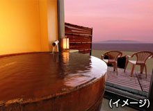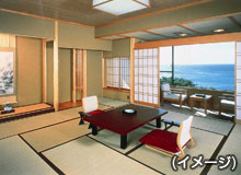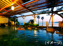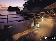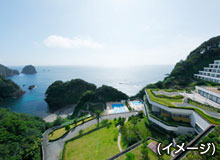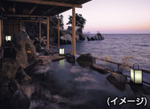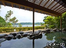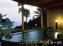 熱川温泉街の中心に位置し、目の前に太平洋が拡がる好ロケーションの地。天然温泉掛け流しの多彩な湯が楽しめ、展望貸切風呂からは、大島が望め、大海原を独り占め。