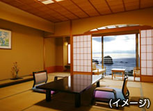 客室の窓を開ければ、どこまでも広がるブルーの空と海・温泉は、かけ流しの天然温泉。夕食には新鮮な伊豆近海の幸を存分に堪能する贅沢な時間をお楽しみ下さい。