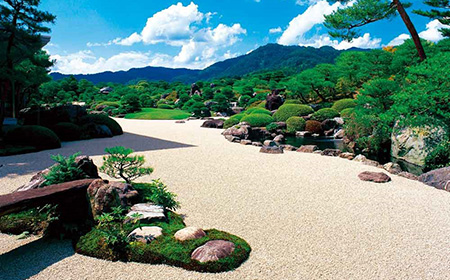 足立美術館には横山大観など日本画の巨匠達の名画が並びます。また、枯山水庭をはじめ、50,000坪にもおよぶ多様な庭園は、四季折々にさまざまな表情を楽しむことができます。