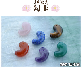古事記にはスサノオノミコトがヤマタノオロチを退治した後、「まがたま」を天照大神(あまてらすおおみのかみ)に献上され、これが「八尺瓊の勾玉」になったことが書かれており、発祥の地が出雲とされています。勾玉とは、太陽と月が重なりあった形を表し、大いなる宇宙を崇拝するということを象徴しています。そして、穴は祖先とのつながりを持つ意味があるそうで、古代から魔よけの石・幸運を招く玉として、用いられてきました。