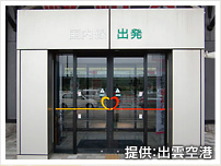 縁結びの神大国主命が鎮座する出雲大社への空の玄関、出雲空港。平成22年7月より『出雲縁結び空港』という愛称がつきました。「縁結び」というだけあって、空港で特製絵馬が売られています!願いを書いた絵馬は2階出発ロビーの絵馬掛けへ。一定の期間掛けられた後、縁結びで有名な八重垣神社へと奉納されます。他にも空港内には水引などがデザインされたドアやハート型の照明など、空港を利用するだけで運気が上がりそうな空間です♪