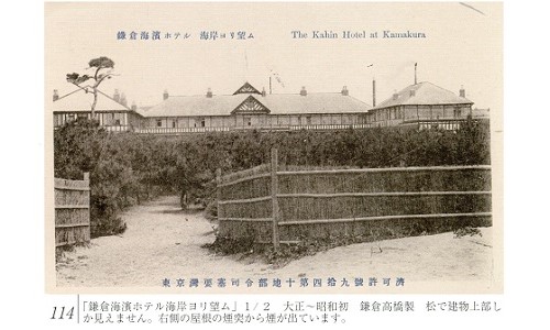 絵葉書「鎌倉海濱ホテル 海岸ヨリ望ム」(鎌倉市中央図書館所蔵)