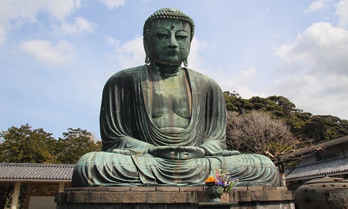 鎌倉の大仏は、鎌倉時代に流行した中国文化の影響を受け、前かがみの姿勢をしているのが特徴的です。風雨に晒され続ける露座の大仏ですが、劣化する度に大規模な修復や債再建が繰り返され、今も昔も国内外問わず観光客に愛され続けています。
