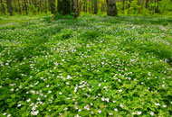 かれんな白い花をつけるニリンソウ/遊歩道脇に群生するニリンソウ(イメージ)