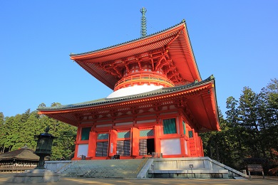 和歌山県伊都郡高野町にある標高約1,000メートル前後の山々の総称。平安時代の弘仁10年(819年)頃より、弘法大師空海が修行の場として開いた「高野山真言宗総本山」です。比叡山と並び日本仏教における聖地となっています。山内の寺院数は、高野山真言宗総本山の「金剛峯寺」をはじめ、117ヶ寺に及びます。