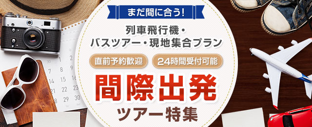 クラブツーリズムの【直前予約可】間際出発ツアー・旅行!直前予約大歓迎・24時間受付可能!まだ間に合う!列車飛行機の旅、バスツアー、現地集合プランなどさまざまなツアーをご用意!