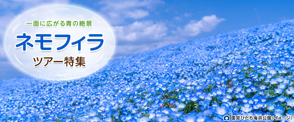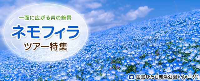 クラブツーリズムのネモフィラツアー・旅行2026特集!青い空と青い花畑の国営ひたち海浜公園など、一面が青に染まる幻想的な絶景を堪能できるおすすめツアーをご紹介。添乗員付きのツアーならしっかりサポート!
