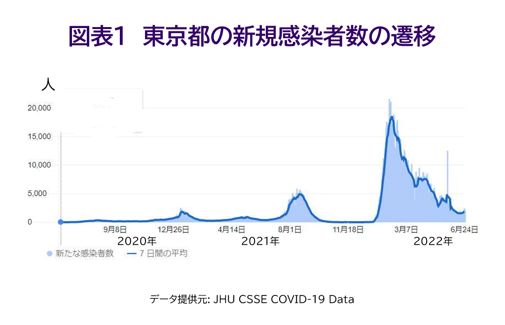 今年の2月に新規感染者数の直近のピークが見られましたが、2月以降は減少傾向にあります。しかし、6月になってから減少傾向は下げ止まり、リバウンドの兆しが見られます。