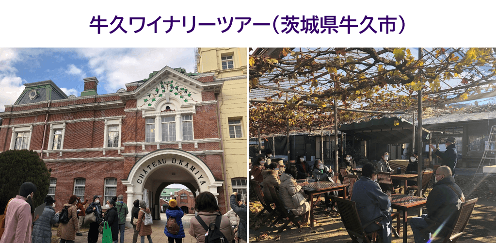 茨城県牛久市との連携協定で実現した「牛久ワイナリーツアー」も人気です。「牛久シャトー」は、1903年設立の日本初の本格的なワイン醸造場。2020年に山梨県甲州市とともに日本遺産に認定されました。ここを舞台に「日本ワイン」一日学校“牛久編”として日帰りツアーにしたところ、好評を博しています。