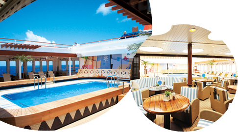 大海原を眺めながらの入浴、多彩な船内イベントなど、心と身体を潤す、海の上の大人の楽園をお楽しみください。