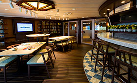 ホライズンラウンジの一角に位置する、各種ウイスキーを豊富に揃えた落ち着いた雰囲気のバーです。バーテンダーが腕をふるうにっぽん丸オリジナルカクテルやドラフトコーヒー(泡立てたコーヒー)を使ったカクテルもおすすめです。