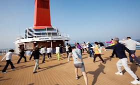 にっぽん丸名物の「おはよう体操」やスポーツ・ゲーム大会などが行われるデッキです。