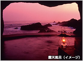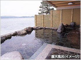 波打ち際に作られた露天風呂より雄大な日本海が一望でき、日本海に広がる朝・夕のまったく違った景色を楽しむことができます。
