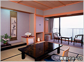 全室七尾湾に面した天然温泉露天風呂付客室をはじめ、趣向を凝らした大浴場をお愉しみいただけます。