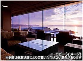 ロビーの向こうには一面に広がる日本海 奥能登の湯でのんびりと