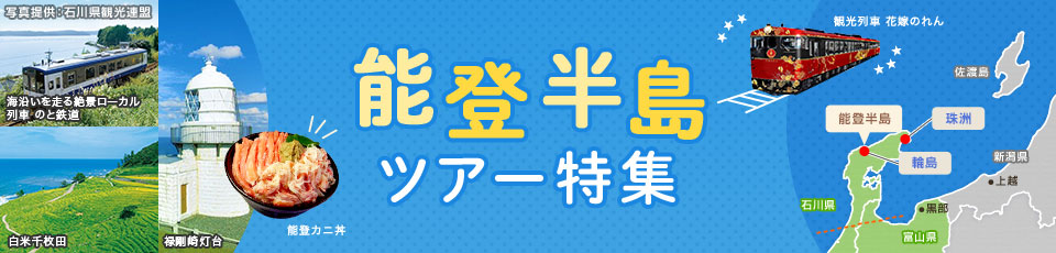 能登半島ツアー・旅行ならクラブツーリズムにおまかせ!添乗員付きならしっかりサポート!白米の千枚田、気多大社といった観光スポットの情報や、食のおすすめ、人気のホテルなどをご紹介。ツアーの検索・お申し込みも簡単です。