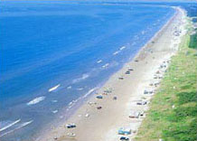 この海岸の特徴は「砂のきめ細かさ」にあります。一粒一粒の砂が海水を含んで引き締まり、固まっているため、大型観光バスでも自転車やバイクでも自由に走行することができます。
