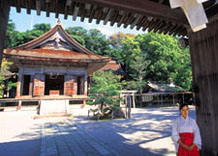 本殿を含め国の重要文化財に指定されている棟も多く、境内裏には立ち入ることのできない「入らずの森」が広がります。