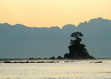 源義経が奥州へ落ちのびる途中に、にわか雨があがることをこの地で待った、という「義経岩」があり、地名「雨晴」の由来ともなっています。