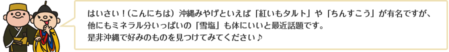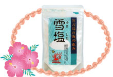 18種類ものミネラルを含み、「含有するミネラルの種類が世界一多い塩」としてギネスブックに登録されています。雪塩ソフト・雪塩ちんすこう・雪塩ラスクなど雪塩を使った商品が多数あります。