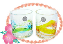 太平洋戦争後の資源難のため、アメリカ軍基地で捨てられたコーラやビールの空き瓶を溶かして再生してグラスを作ったことが始まり。沖縄の日差しできらきらと輝く。