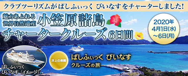 ぱしふぃっく びいなすチャータークルーズ旅行・ツアーなら、クラブツーリズム!安心の添乗員付きツアーです。クルーズ客船「ぱしふぃっく びいなす」で行く小笠原ツアーをご紹介。ツアー検索・ご予約も簡単です。