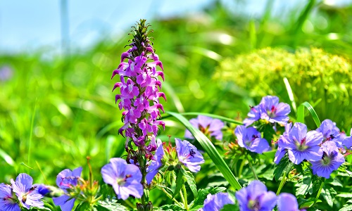 礼文島:ヨツバシオガマとチシマフウロ(イメージ)
