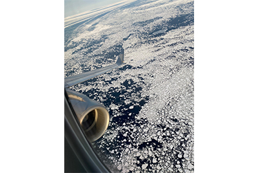 オホーツク海上空に差し掛かるとベテランパイロットのアナウンスが入り流氷観賞がスタート。