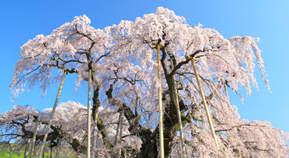 「日本三大桜」(出典:三春町/北杜市/岐阜県各観光協会)とは、福島県の三春滝桜・山梨県の山高神代桜・岐阜県の根尾谷薄墨桜の3つの巨木の桜のことです。三大桜に埼玉県の石戸蒲桜・静岡県の狩宿の下馬桜を加えたものが、日本五大桜(出典:北本市役所/駿河湾観光連盟)です。