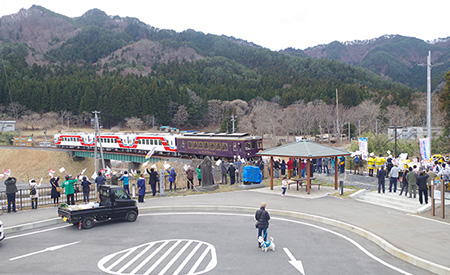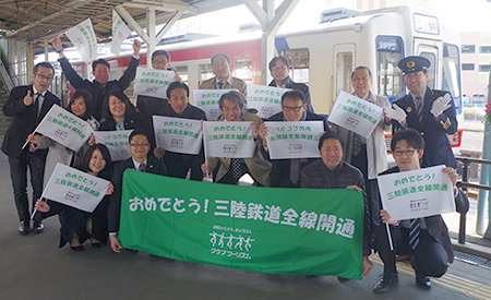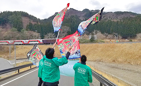 2019年3月23日にリアス線全線開通を祝したミニイベントを開催し、お客様と地元の方々、クラブツーリズムの社員が旗をふって一番列車を温かくお迎えし、喜びと感動を分かち合いました。