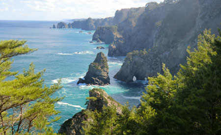 リアス式海岸と呼ばれる地形を持つ三陸は、その特徴として切り立つ岸壁と、豊富な海の幸が知られます。