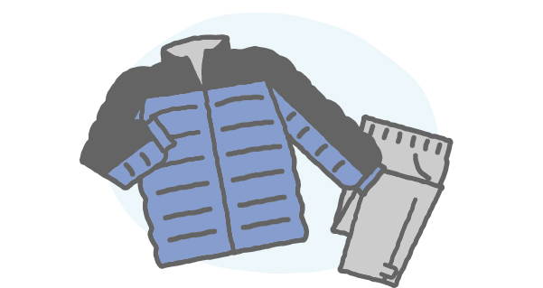 最低量をコンパクトにまとめ、暑くなれば服を脱ぎ、寒くなれば服を重ね着するなどして、温度を調節することが大切です。