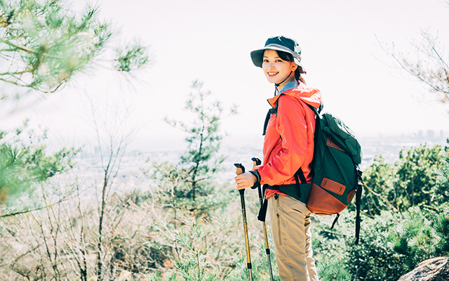 日帰りのハイキング・登山であれば、デイパック型(20~30Lくらい)が適当。雨対策としてザックカバーも忘れずに用意しよう。