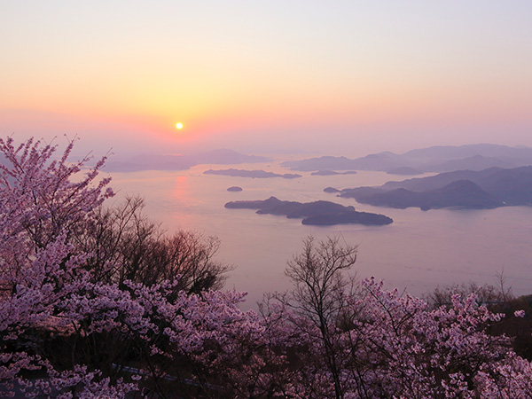 三原市は、中国地方の広島県のほぼ山陽沿岸の中央に位置し、瀬戸内海の温暖な気候に恵まれた街です。JR山陽本線や呉線、瀬戸内の島嶼部への船、また、本郷町には、広島空港があり、交通の要所としての役割を果しています。瀬戸内海の島々の眺望はすばらしく、天候に恵まれれば、四国山脈をも見渡すことができます。写真は竜王山から見たしまなみです。