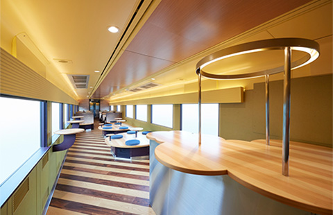 乗務員室のすぐ側にあるフリースペースであり、座席にはない「彗星」ならではの流れゆく景色がご覧いただけます。