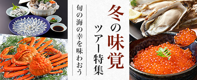 クラブツーリズムの冬の味覚ツアー・旅行!冬の味覚といえば、ふぐ!カニ!牡蠣!クラブツーリズムでは、冬のグルメミステリーツアーや食べ放題ツアーなどおすすめの冬の味覚ツアーを多数掲載しています。ツアー検索・ご予約も簡単です。