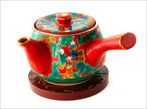江戸時代初期の明暦年中(1655年~)に、藩の肝いりで後藤才次郎により九谷村に窯を築いたのが始まりと言われています。加賀百万石の華麗な装飾の文化に影響を強く受け、これまでにない独特な様式美を確立した磁器として、完成したのが「古九谷」です。久谷五彩といわれる上絵具 緑・黄・赤・紫・紺青で描かれた色絵磁器を特徴とします。