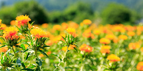 山形県の中央部に位置する村山地域は、江戸時代には日本一の紅花の産地として知られていました。紅花は、山寺(宝珠山立石寺)を建立した慈覚大師や第二世安然大師によってこの地に伝えられたと言われ、江戸時代には日本一の紅花の産地として知られるようになり、上方に運ばれて華麗な西陣織や化粧用の紅に加工されて日本人の暮らしを彩りました。「最上紅花」と呼ばれた当地の紅花は、朱から真紅まで多様な色合いを出す貴重な染料であり、当地に莫大な富をもたらし、豊かな文化を今に伝えます。この地域を訪れる者は、山寺の情景と紅花畑、紅花豪農・豪商の蔵座敷そして雛人形など、様々な上方由来の文物を通して芭蕉もきっと目にしたに違いない、紅花で栄えた当地の隆盛を偲ぶことができるのです。