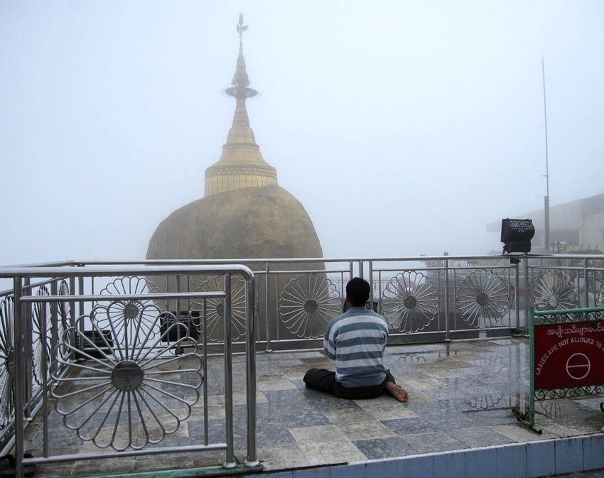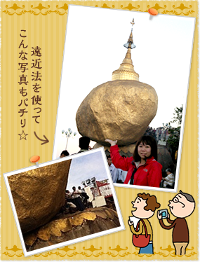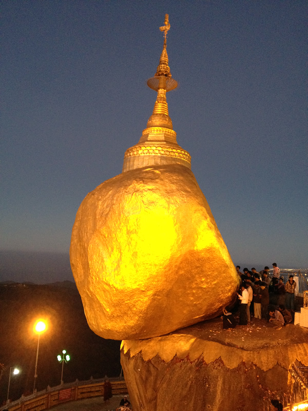 仏陀の頭髪が収められていてそれによってバランスをとっているから落ちないのだ、といわれている奇跡の岩。ミャンマー屈指の巡礼地として毎日多くの人々が訪れます。