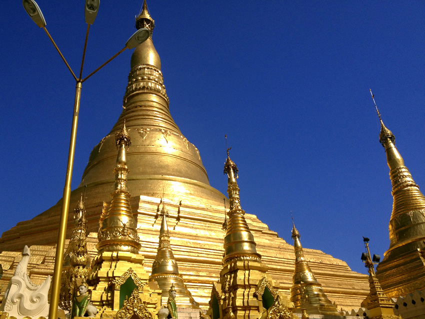 シュエダゴン・パゴダは、2500年も前に創建されたと伝わるミャンマー最大の聖地で、丘の上に巨大な黄金の仏塔が建ち並び、きらびやかなヤンゴン観光のハイライト。仏塔を覆う金箔はすべて信者から寄進されたものといわれ、ミャンマーの人々の信仰心の篤さを伺い知ることができます。