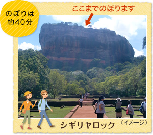 シギリヤ・ロックの観光は、登り口と降り口が別となりますので、万一歩行に心配がある方は、ふもとにてお待ちいただきます。