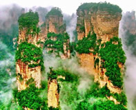天子山自然保護区は武陵源景勝地の北部に位置しています。展望台から奇峰群を間近に観ることができ、仙女献花、御筆峰は必見です。雲海、峰林、日の出、冬景色の4つの絶景を持つ観光地です。