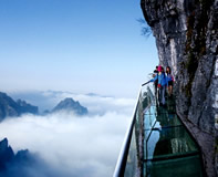 天門山は、全長7455mのロープウェイで上ると断崖絶壁の遊歩道から天門山の絶景を一望できます。