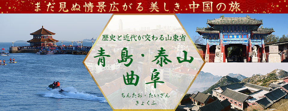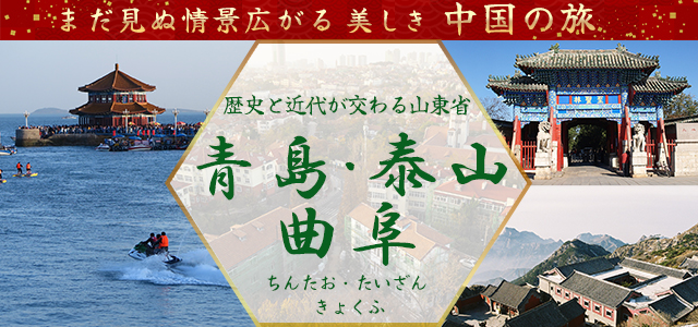 クラブツーリズムの青島(チンタオ)・泰山(たいざん)・曲阜(きょくふ)など山東省ツアー・旅行をご紹介!添乗員付きのツアーならしっかりサポート!歴史と近代が交わる山東省へでかけてみませんか。ツアー検索・ご予約も簡単です。