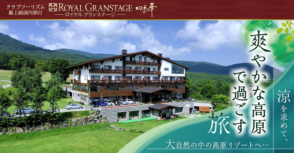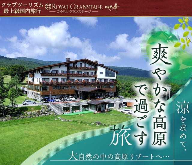 クラブツーリズムの最上級国内旅行「ロイヤル・グランステージ 四季の華」高原・リゾートツアー・旅行。大自然の中で過ごす上質の旅をご案内いたします。飛行機・新幹線グリーン車で行く旅や、豪華バス「ロイヤルクルーザー」で行くバスツアーなどをご紹介。