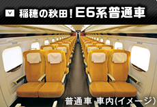 E6系は、グリーン車は、伝統であつらえたプライベートな空間をイメージし、秋田の伝統工芸をデザインモチーフとしています。普通車は、実り豊かな秋田の大地をイメージし、豊かに実った稲穂の中へ分け入る時の高揚感や自然の恵みを感じられる空間としています。車内設備としては、12号車に、改良型ハンドル形電動車いすに対応した大型の多目的トイレを設置しているほか、大型フルカラーLEDを採用した情報案内装置、客室とデッキへの防犯カメラ設置など、セキュリティやユニバーサルデザインを考慮した車内設備を備えています。
