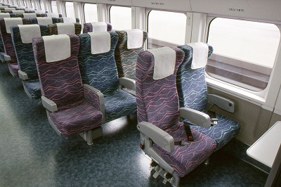 E2系は、客室は間接照明とグレーを基調とした落ち着いた内装の中に、青・紫・緑を基調とした腰掛をランダムに配置してカジュアルな雰囲気を演出し、振動や騒音の低減だけではなく、お客さまにくつろぎと安らぎを感じてご利用いただける快適な移動空間の提供を目指した新幹線車両です。座席は、普通車、グリーン車の2種類があります。